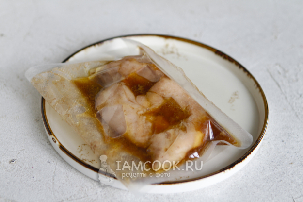 Итак, наша грудка готова. Вскройте пакет, достаньте грудку и слегка обсушите ее бумажным полотенцем.