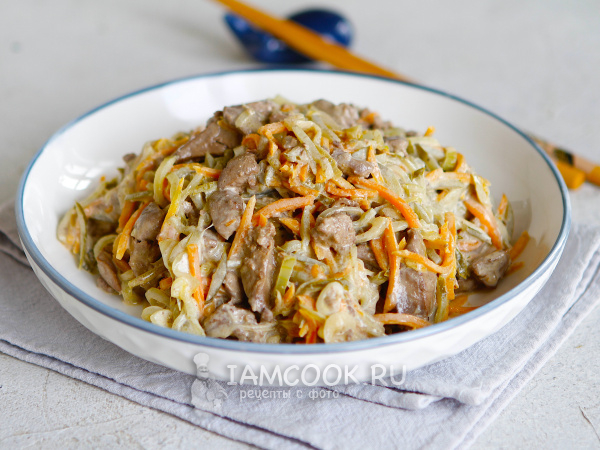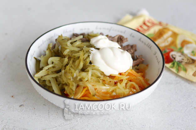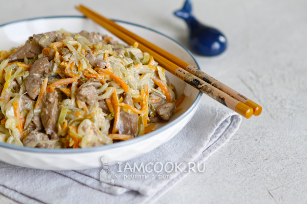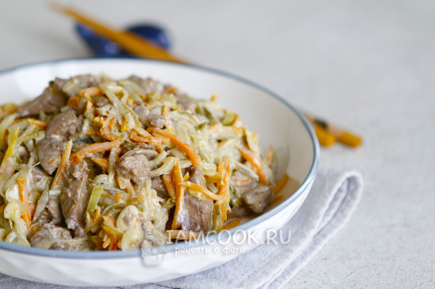 Салат «Пассажирский» с куриной печенью готов.