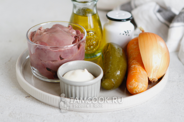 Соберите по списку все ингредиенты для салата «Пассажирский» с куриной печенью.