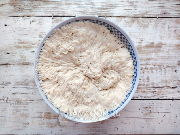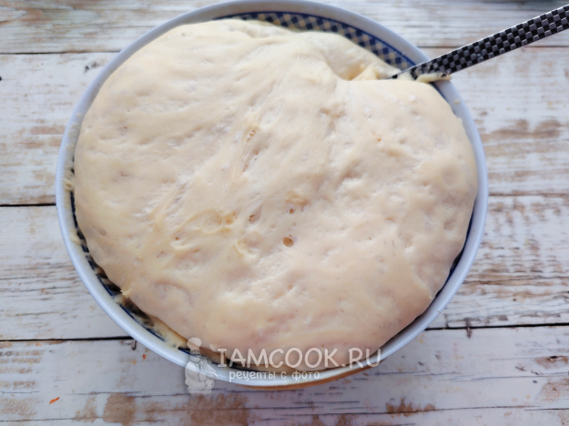 Когда тесто поднимется, обмять его и дать ему еще раз подрасти.