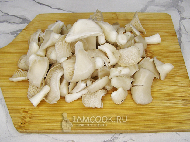 Крупные вешенки нарезаем помельче, небольшие грибочки можно оставить целыми.