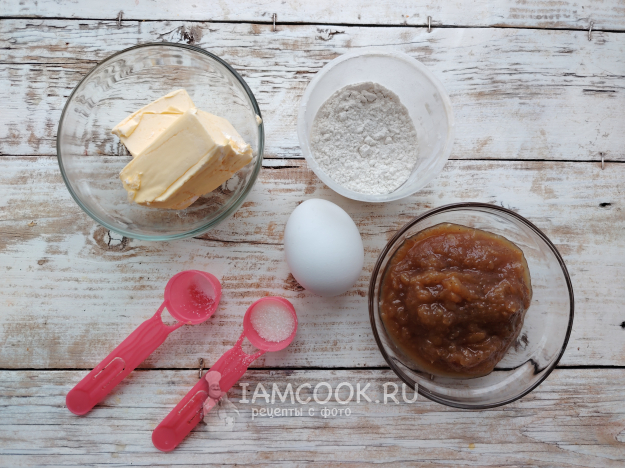 Собрать по списку продукты для приготовления песочного торта с яблочным повидлом.