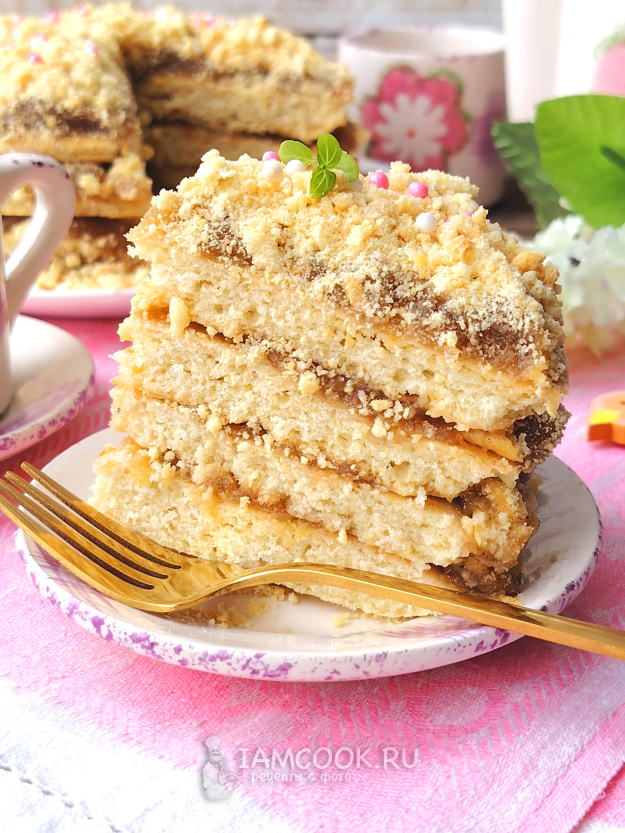 Подать торт с яблочным повидлом к столу с чаем или кофе. Приятного чаепития!