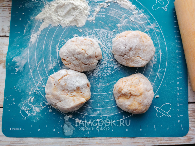 Отдохнувшее тесто разделить на четыре части.