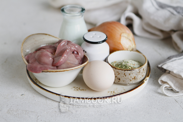 Вот такой набор продуктов нам понадобится, чтобы приготовить суфле из куриной печени в аэрогриле.