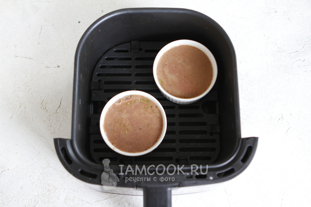 Разлейте полученную массу по формам. Формочки перенесите в чашу аэрогриля.