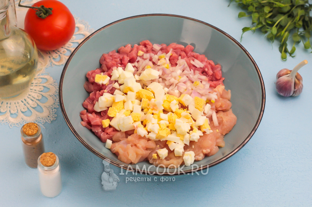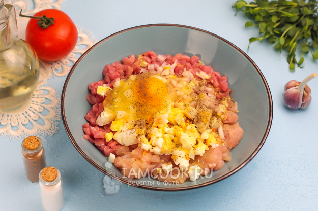 Продукты для приготовления рубленых котлет с яйцом - перед вами!