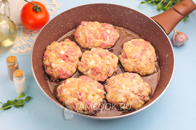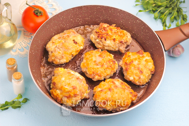 Прогрейте растительное масло на сковороде и выложите в него заготовки. Убавьте нагрев до среднего и обжарьте котлеты примерно 8-10 минут с одной стороны, до румяности.