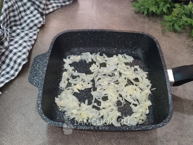 В сковороде разогрейте масло, обжарьте до прозрачности и мягкости лук и чеснок.