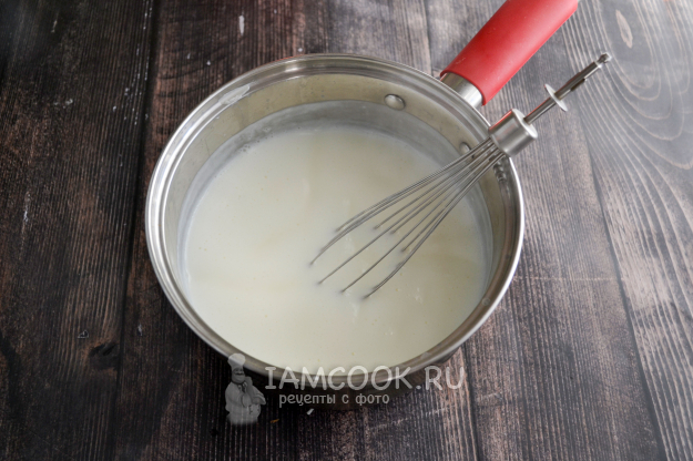Постоянно перемешивая, доведите до кипения, проварите 2-3 минуты, до загустения. Перемешивать удобно венчиком.