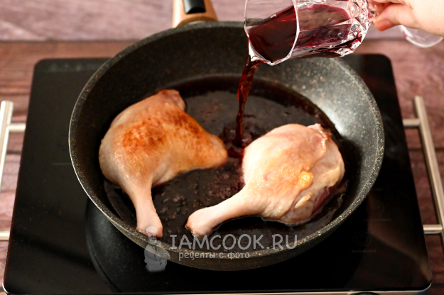 Томите утиные ножки в красном вине примерно 2-2,5 часа.