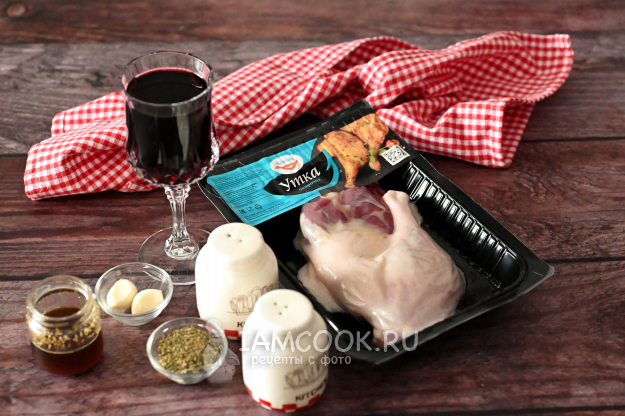 Соберите необходимые продукты и будем готовить вкуснейшие утиные ножки в красном вине на сковороде.