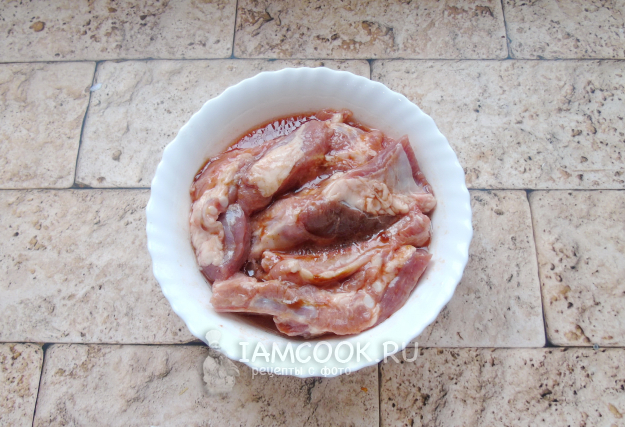 Выложите ребрышки в маринад и поставьте в холод часов на 6-7, можно на ночь.