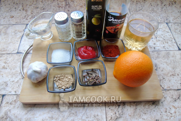 Соберите ингредиенты для приготовления свиных ребрышек по-китайски.