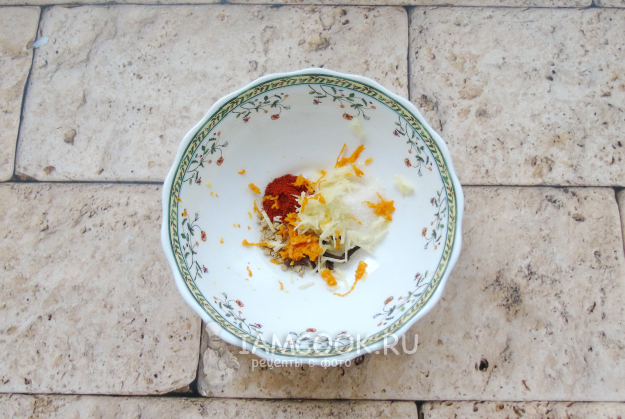 Натрите чеснок и цедру апельсина.