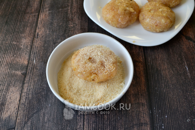 Обкатайте котлеты со всех сторон в панировочных сухарях. Если готовых сухарей нет, измельчите полностью сухой белый хлеб или батон до мелкой крошки. Можно измельчить в блендере или натереть на терке.
