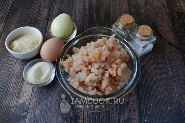 Соберите по списку продукты для приготовления котлет из щуки в аэрогриле. У меня домашний щучий фарш, но можно использовать фарш из любой рыбы: минтая, трески, судака, хека.