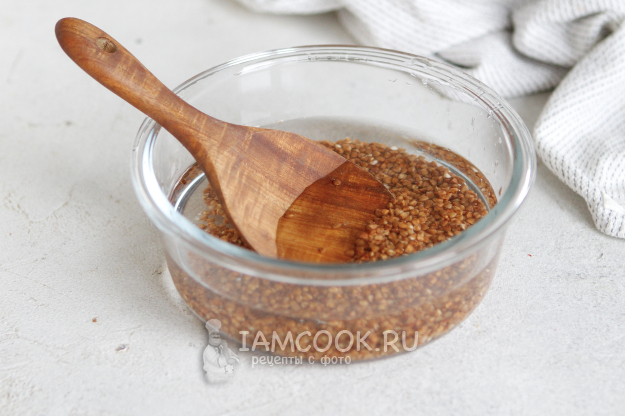 Переберите гречку и тщательно ее промойте под проточной водой. Промывайте до прозрачности воды.