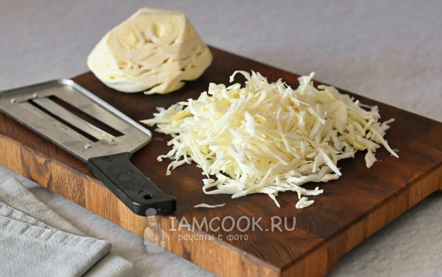 Капусту нашинкуйте соломкой при помощи ножа или специальной шинковки.