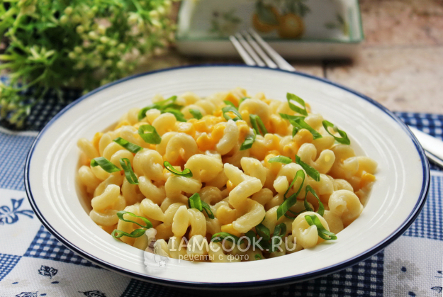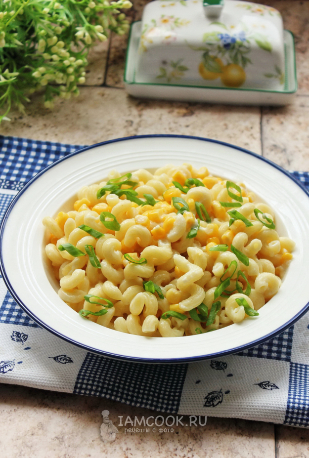 Макароны с сыром и кукурузой готовы.
