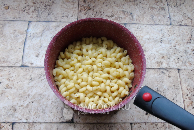 Тем временем вскипятите в кастрюле воду, посолите и выложите макароны. Варите согласно инструкции на упаковке. Мне потребовалось 15 минут. После откиньте макароны на дуршлаг.