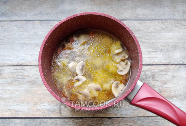 Варите суп до готовности всех ингредиентов. После выложите плавленый сыр и перемешайте. Лучше взять мягкий из коробочки.