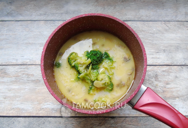 Брокколи помойте и разберите на соцветия, добавьте в суп.