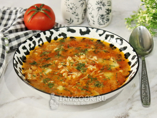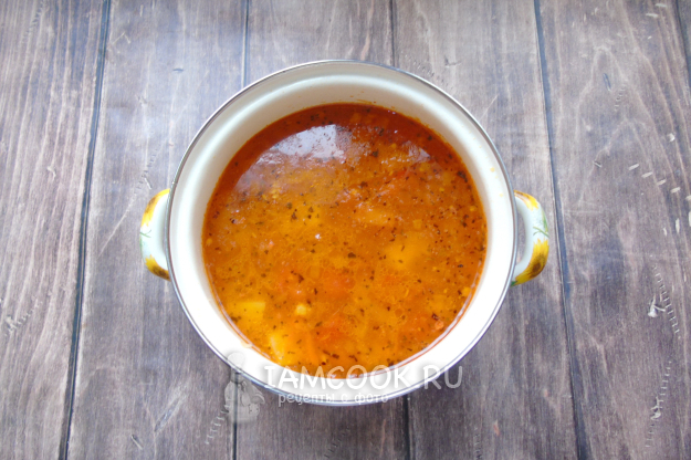 Ароматный, сытный и вкусный суп из жареных овощей с фаршем готов.