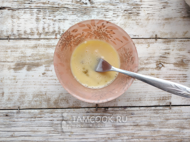 Яйца для теста разболтать вилкой или венчиком до получения однородной смеси.