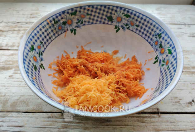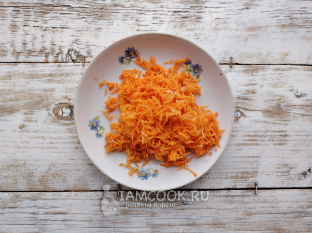 Морковь почистить, натереть на терке с мелкой ячейкой.