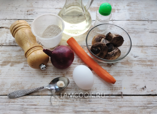 Собрать по списку продукты для приготовления морковного рулета с грибами (шампиньонами).