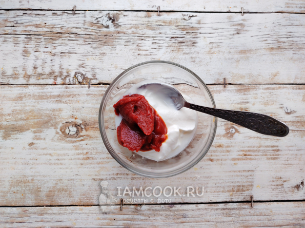В отдельной мисочке смешать томатную пасту и сметану.