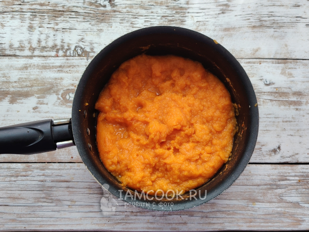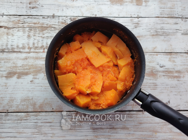 Готовность можно определить зубчиками вилки - вилка должна легко входить в мякоть тыквы.