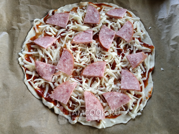 Разложить колбасу.