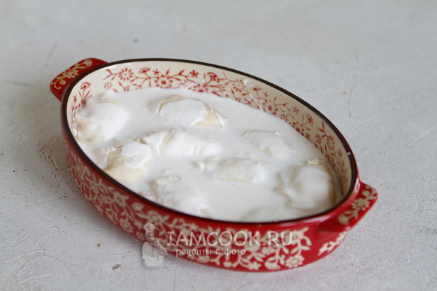 Сливки разбавьте кипяченой водой и влейте их в форму.