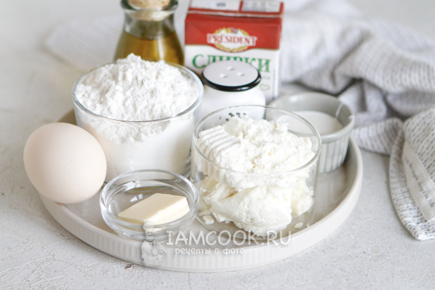 Соберите по списку все необходимые продукты для приготовления вареников с творогом в духовке.