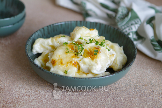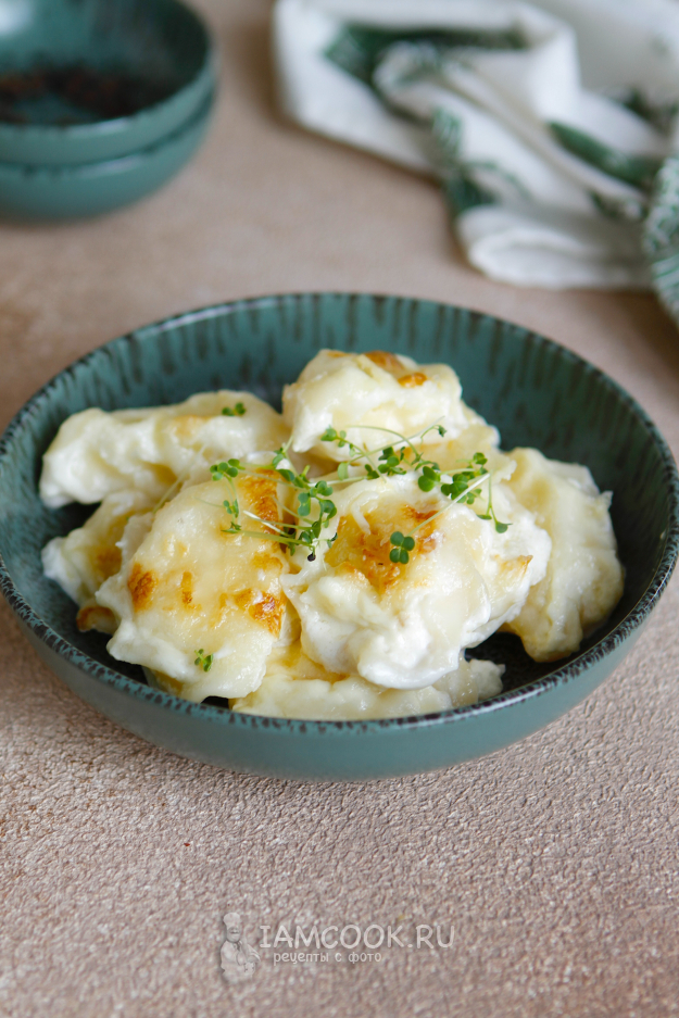 Запекайте вареники с творогом в духовке при 190 градусах 30 минут.