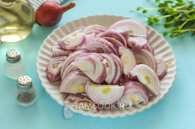 Нарежьте луковицы кольцами, полукольцами, но не мельчите.