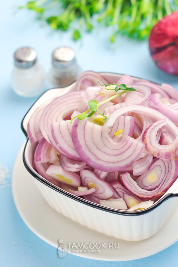 Спустя указанное время жидкости чуть убавится в емкости, а луковая нарезка приобретет розоватый оттенок. По менее пикантному аромату вы сможете понять, что лук заквасился. Еще одна подсказка - рассол помутнеет, и это нормально. Главное, не должно быть никакой плесени или потемнений.