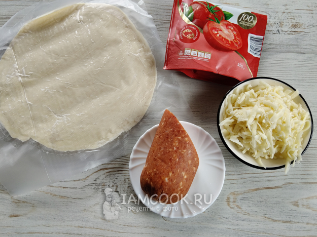 Берем ингредиенты и готовим лепешку роти с колбасой и сыром.