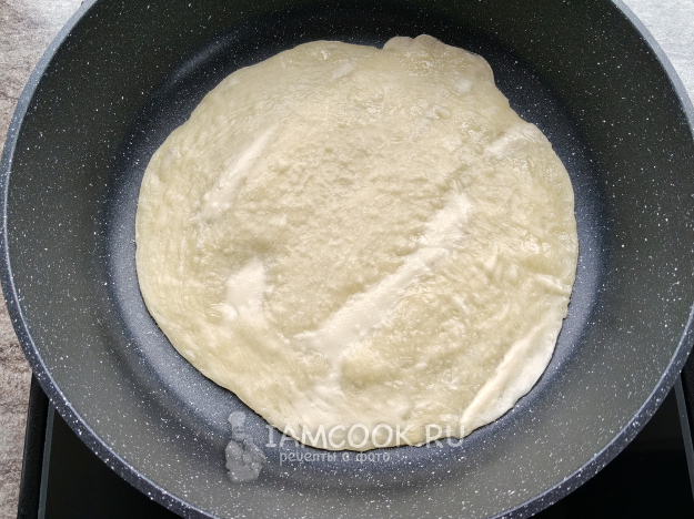 Сковороду нагреть, положить лепешку (можно прямо мороженую).