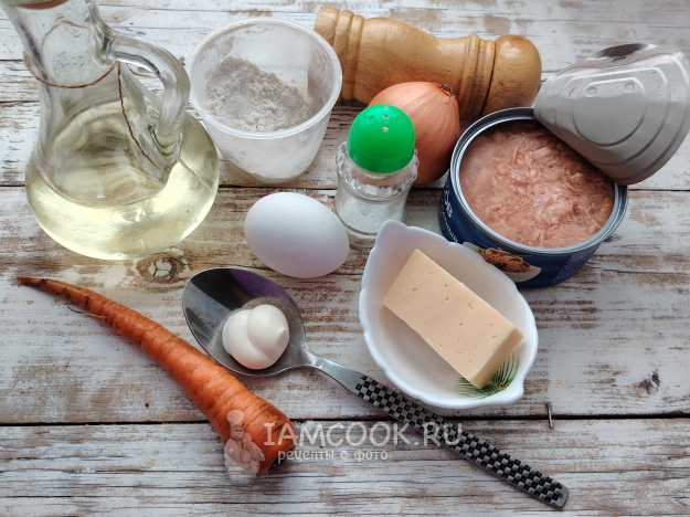 Собрать по списку продукты для приготовления морковного рулета с рыбой (консервированным тунцом).