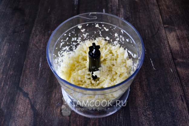 При помощи насадки металлический нож измельчите капусту до мелкой крошки.