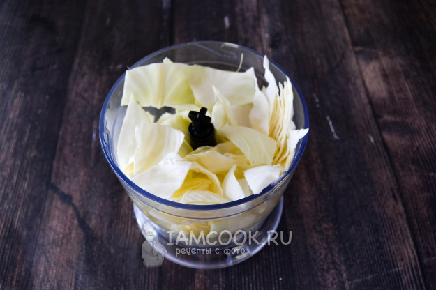Капусту нарежьте произвольными кусочками, положите в чашу измельчителя.