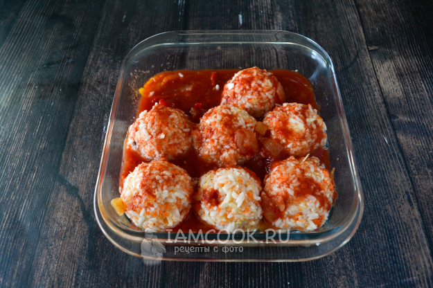 Залейте заготовки лечо или томатным соком. Поставьте форму в разогретую до 180°С духовку примерно на 30 минут