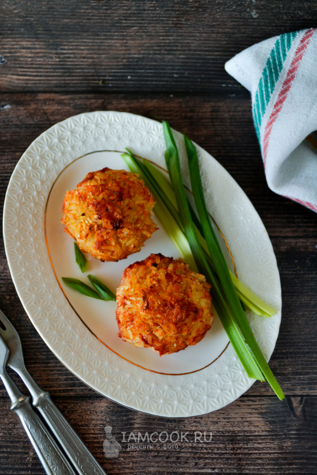 Соберите по списку продукты для приготовления овощных тефтелей. Капусту очистите от верхних жестких листьев, морковь и лук очистите и вымойте.