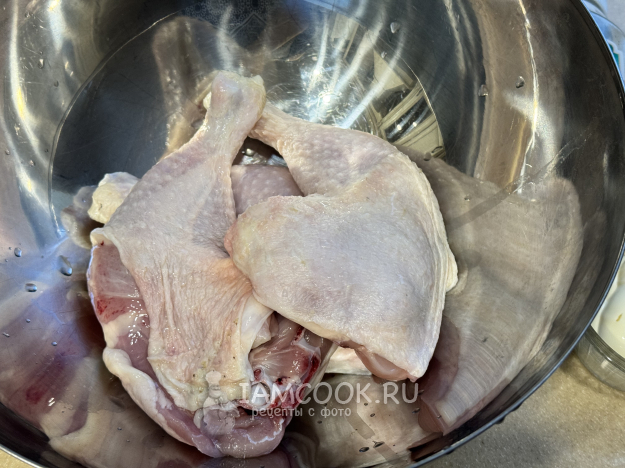 Окорочка промыть под водой и обсушить бумажным полотенцем.
