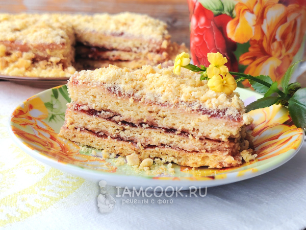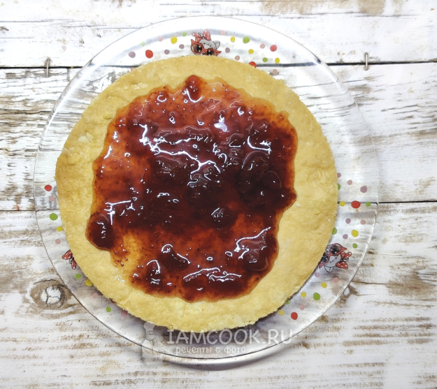 Подать торт с клубничным вареньем к столу с чаем или кофе. Приятного чаепития!