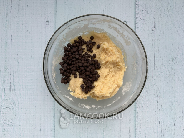 Добавьте шоколадные капли и хорошо перемешайте.