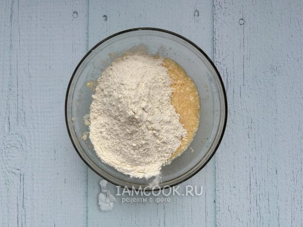Соедините масляную смесь с мукой.